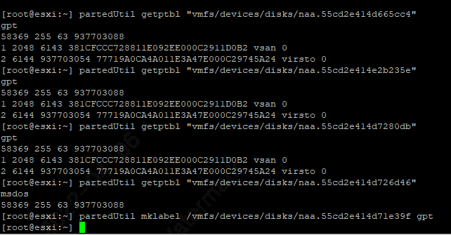 Formatting a new LUN in ESXi fails with the error: No Implementation: Support for adding partitions to disk label is not impleme